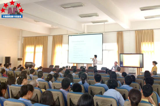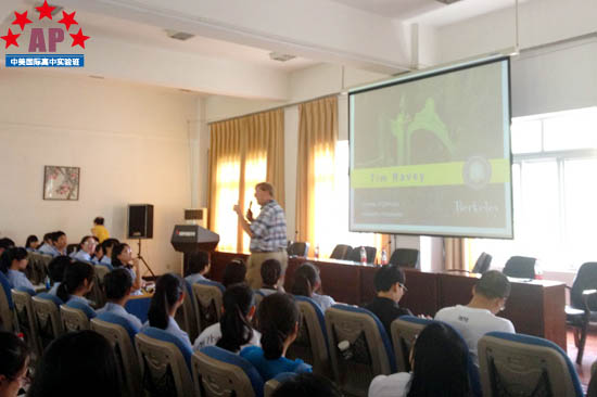 9月17日中午一点,在我校行政楼三楼会议室,AP课程中心实验班的师生迎来了加州大学伯克利分校首席招生官Tim Ravey及Matt Allen先生。据悉,访问团来到成都后,加州大学伯克利分校经过对成都众多中学的慎密考察下最终选择了成都外国语学校AP课程中心实验班。而对于美国顶尖大学的来访,高中各年级都踊跃参与,大厅内座无虚席。