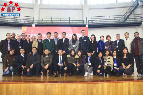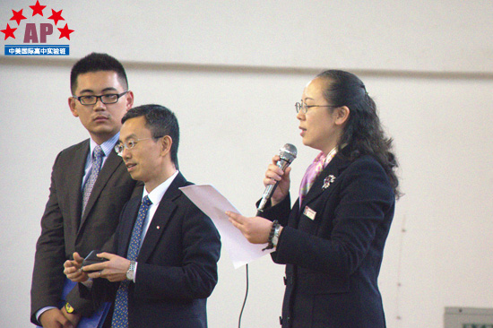 早上10点,交流会正式开始。首先,成都外国语学校副校长路跃与国际部王主任对这批远道而来的客人表示了热烈的欢迎并向招生官们介绍了成都外国语学校与AP课程中心。路校长说,"成都外国语学校创办于1989年,是经教育厅批准的四川省第一所具有外语特色的中学。学校以"立学中华、语通世界"为办学理念,以"为学生发展奠基、对民族未来负责"为指导思想。近几年,成外众多优秀学子去到了国外顶尖大学深造学习,加拿大也成为许多学生的心仪留学国家。其中,成外AP课程中心实验班2012届优秀毕业生梁曦今同学就以优异的数学成绩得到了加拿大滑铁卢大学精算专业(全球排名第一)、多伦多大学、麦吉尔大学的青睐。"