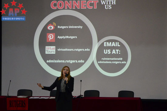 2014年3月17日,美国罗格斯大学招生官带着该校最新的招生政策来到成都外国语学校AP课程中心,除了让同学们更好地了解罗格斯大学外,还面对面地回答了同学们提出的各种问题。在近一个小时的招生说明会上,罗格斯大学招生官从历史、现状、学科设置等多方面为同学们介绍了这所全美最具历史之一的高等学府。