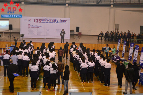 3月26日早上8点,CIS大学访问团一行近30人到访成都外国语学校AP课程中心,在校体育馆与AP课程中心的同学进行了近距离的交流。在大约一个小时的交流时间里,AP课程中心的同学在录取条件、成绩要求等方面对这些学校有了更多直接的了解。