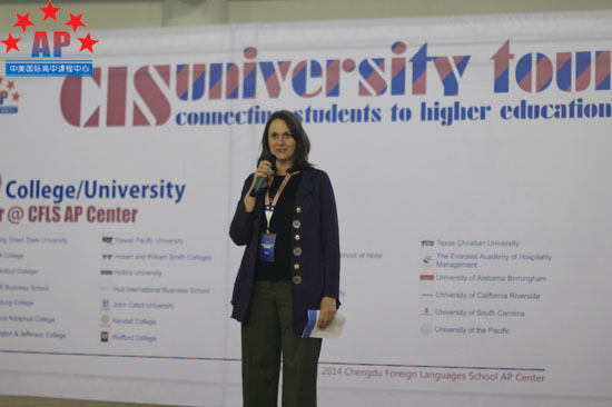 接着,AP课程中心学术校长Roberto Santos代表课程中心全体师生致欢迎词,他首先感谢CIS大学访问团的到来,同时希望同学们能够利用好这次机会,对这些大学进行更深入的认识;在AP课程中心同学热烈的掌声中,CIS招生官代表也做了简短的发言。她表示,CIS大学访问团的招生官们希望通过这次交流,能帮助同学们更好的掌握学校的相关信息;希望能够吸引更多的同学前往这些学校深造。