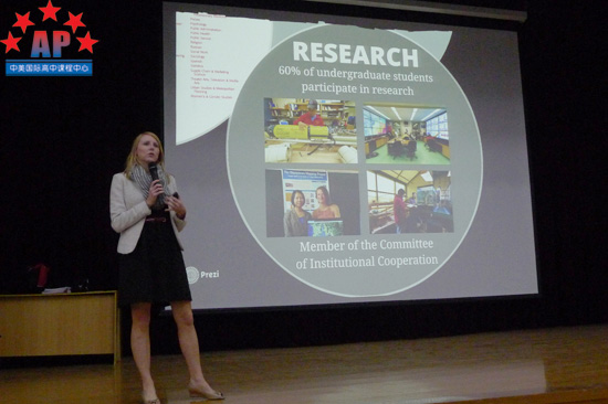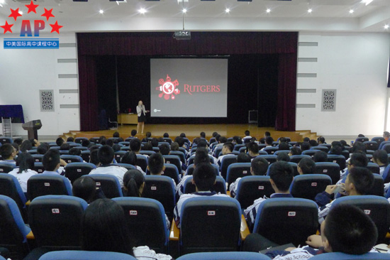 会后,AP课程中心的同学还显得意犹未尽,走到主席台边将Meghan团团围住。"罗格斯的食堂怎么样?""学费贵吗?""我可以提前毕业吗?"Meghan笑道:"同学们,你们的思维很活跃,问题也问的很好。正如我之前说的那样,罗格斯大学是公立大学,学费相对便宜,在27000美金左右。学校食堂是自助餐形式,入学时可根据自己的需要购买meal plan。学校是允许学生在修完规定学分的情况下提前毕业,当然,你得付出很大的努力。"Meghan会后告诉升学老师:"AP课程中心同学的口语很好,这对于高一的学生来说已经很不错了。希望下次还会有机会到访AP课程中心。"