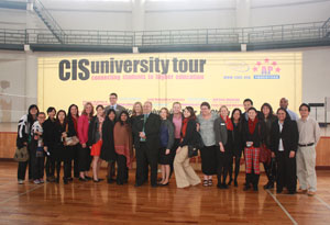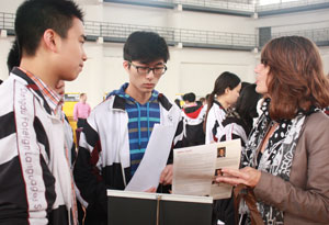 4月12日,14所美国大学、2所加拿大大学、1所英国公立大学,以及阿联酋酒店管理学院和韦伯斯特大学(奥地利)等共19所海外大学组团来到了AP课程中心,在成外体育场与中美国际实验班学子进行了一对一的交流。