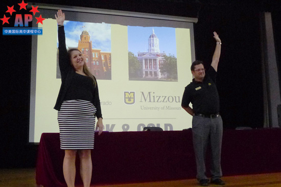 10月20日上午十点,密苏里大学和科罗拉多大学招生官到访了成都外国语学校AP课程中心。密苏里大学与科罗拉多大学都是AAU联盟校成员,AAU即Association of American University,密苏里大学是34所公立学校中,唯一一个来自密苏里的大学。两所大学都有各自的优势,在招生说明会现场,两位招生官风趣幽默的谈吐与在座学生"打成一片",说明会在愉快的气氛中展开。