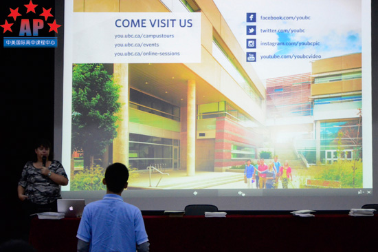 在Dayna的介绍过程中,她一直和AP课程中心的同学们保持交流,期间AP课程中心的同学可以直接向她提问,Dayna也会立即给出答复。此外,Dayna提醒同学们:当递交完毕申请材料时,需要注意四个方面的问题,第一保持通讯畅通,及时查看邮件和申请进度,避免错过学校信息。第二,及时提交相关文件。提交申请前的几周里,学校会将需要的资料通过邮件方式发送并且告知怎样提交。截止日期为2015年3月15日。第三,如果需要在校住宿,需要在Student Service Center注册并申请,填写住宿申请表格。第四,如果申请者不是加拿大公民或者永久居民,需要得到上学许可证。如果UBC录取你,学校会派发相关资料给学生办理上学许可。所以建议大家尽早申请,错开高峰期,以免耽误入学。