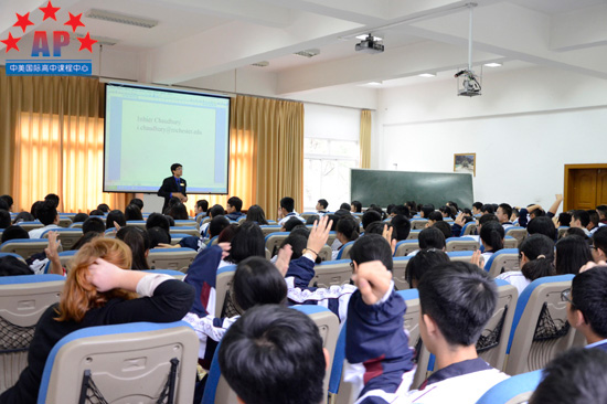 10月30日上午10点,罗彻斯特大学University of Rochester招生官Isthier Chaudhury到访了成都外国语学校AP课程中心,并与课程中心的同学们进行了面对面的交流。说明会上,Isthier就罗彻斯特大学的地理位置、课程设置﹑校园生活﹑学术机会、申请要求等给同学们进行了详细介绍,令在场同学对罗彻斯特大学有了更深的了解。