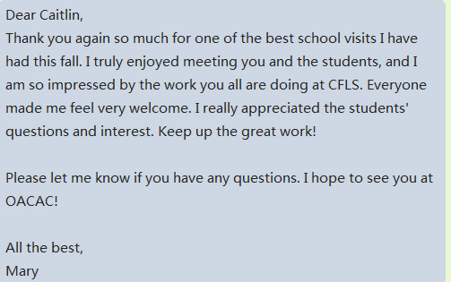 成外AP课程中心一直将学生未来的发展作为首要目标,每年申请季开始,课程中心会邀请到美国各大高校的招生官来访,为同学们带来申请新信息。昨日,圣母导学到访我课程中心后,对课程中心同学给与了高度赞扬。并与海外升学指导老师Caitlin特地发邮件表示:“来访期间,课程中心每一位老师都在见面会上提供了最大的支持,同学们流利的英语提问让我感到很欣慰,希望我们可以继续合作下去。”