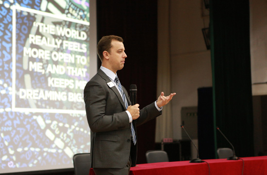 坐落于纽约最繁华地段的纽约大学(NYU)一直是众多学子梦寐以求的学校,纽约大学凭借优越的地理位置,优良的师资以及丰富的实习资源在2016年USNEWS上稳坐TOP32。成外AP课程中心特地邀请到NYU招生官Nils Sundin于10月23日到访了课程中心,为同学们带来了2016年纽约大学的最新招生信息。课程中心三个年级的同学均参加了此次见面会。