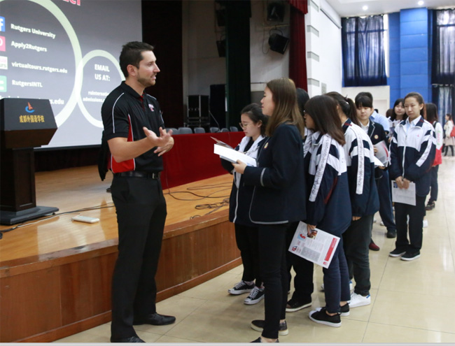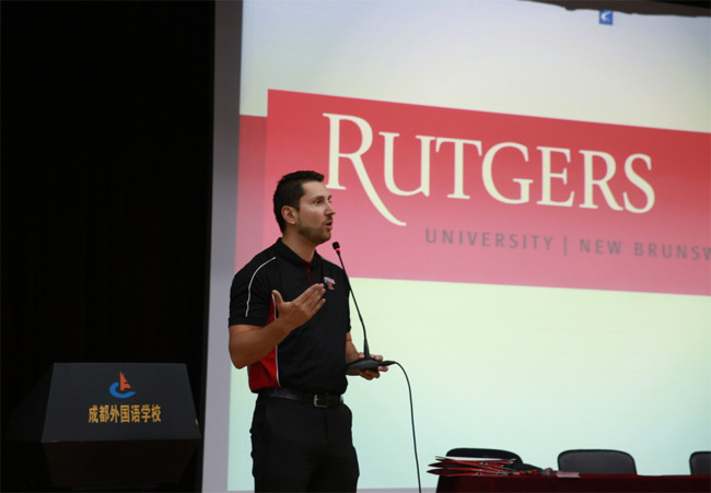 12月12日,美国新泽西州的最大最高等学府罗格斯大学招生官到访成外AP,这是一所拥有超过100多个专业的综合性大学。