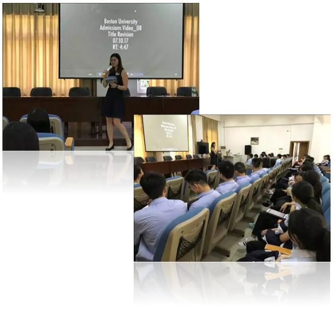 Today’s speech given by the AO from Boston University is probably one of the best speeches that I have ever heard of. It contains useful information about applying BU, like the questions for the supplemental essay and the standard we must have in order to fit its requirements. On the other hand, she also introduced the schools and campus life in BU, like its Liberal Arts School, activities, and community works. This kind of college visit is awesome for our Grade 11 students as we can get to know more about U.S. higher education and be encouraged to study harder to achieve our goals.