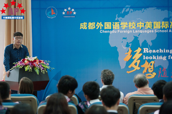 毕业生的家长们也放下手头的工作,来到了毕业典礼的现场,毕业生何爱的母亲代表全体家长们,感谢成都外国语学和AP课程中心实验班的所有中、外方老师和领导们,这三年来给予孩子们的谆谆教导和无私关爱,让孩子们在这三年中学到了很多,也成长了很多。同时,她也要求在座的毕业生们无论走到哪里,也不要忘记了母校,常怀感恩之心,勇敢地去拼搏,父母永远是你们最坚强的后盾,家永远是你们停泊的港湾。