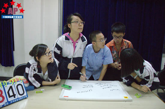 比赛第一轮是由外教给出单词的描述,我们来猜词。而给我们描述的外教并不是美国本土人,所以他的发音也给我们带来很大的挑战。第一个词:"This word is to describe you do not believe something. This word has ten letters……"我有了思绪,便马上举手!