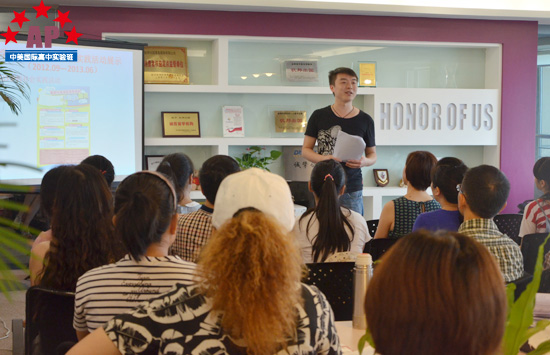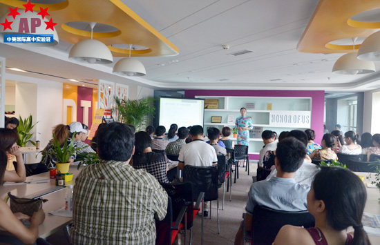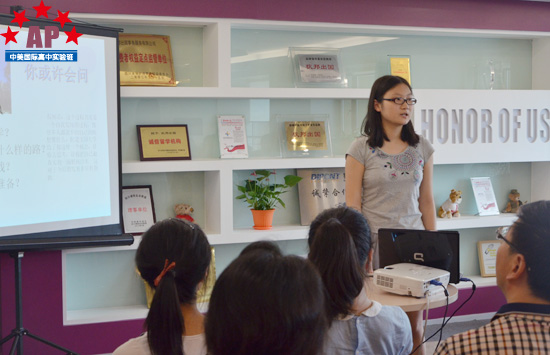 随后,负责学生活动的方老师为新生们介绍了高中三年AP课程中心将会开展的各类课内外活动和社会实践活动。方老师一再提醒各位新生,国际课程中的活动课不是为了玩耍的,而是教学课程的重要组成部分,各位同学可以结合自己的未来专业选择有针对性地选择社会实践课程,也希望同学们在这些活动课中学会团队合作、学会各种实用技能,得到真正的锻炼和成长。