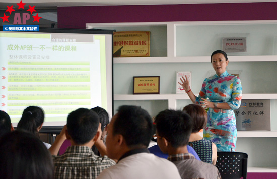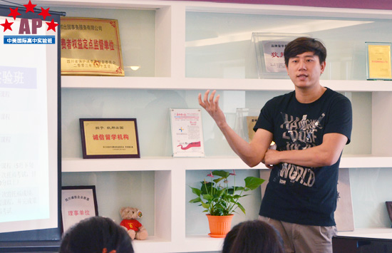 负责人汪宇恒老师正在介绍AP课程中心实验班的课程设置