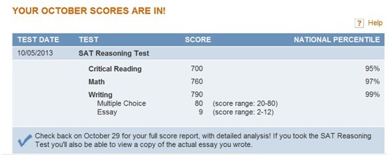 曾维进同学的SAT成绩