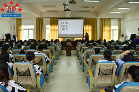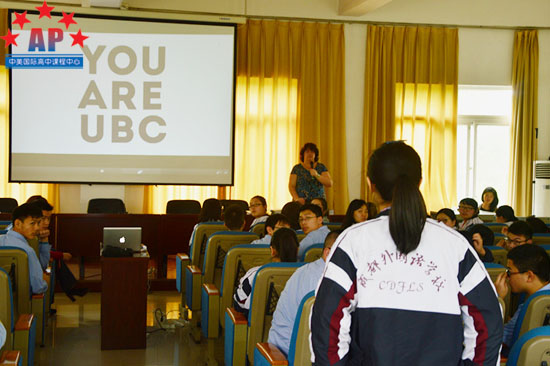 2014年4月15日上午10点,加拿大英属哥伦比亚大学University of British Columbia(简称UBC)招生官到访成都外国语学校AP课程中心。UBC招生官不仅为同学们介绍了这所有着百年校史的加拿大顶尖名校的基本信息,还为同学们介绍了该校最新的招生信息。