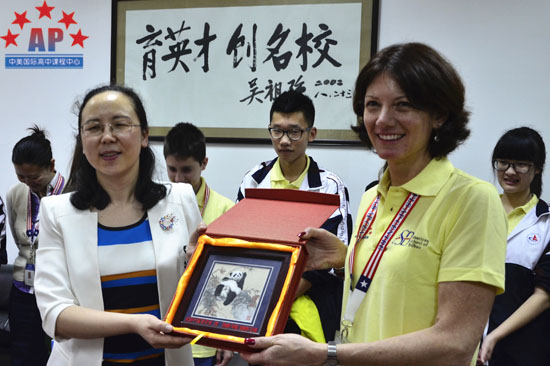 路跃校长代表成外赠予西班牙American School of Bilbao熊猫刺绣