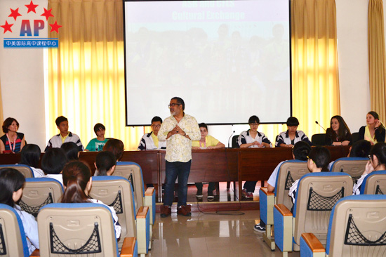 下午2点半,参加交换生项目的8位学生在成外行政楼三楼会议室分享了本次交换生活的收获与感受,AP课程中心高一全体师生参加了本次分享会。首先,学术校长Mr. Santos感谢了为本次交换项目付出努力的工作人员,他认为整个行程井然有序,这些都离不开寄宿家庭和AP课程中心老师的共同努力,他也希望这次的交换生活能够让八位学生学会思考与感恩。