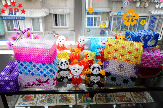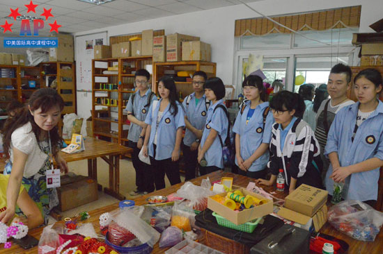 在得知我们将要在成都外国语学校举办慈善义卖活动来帮助阳光家园时,陈老师非常感动,也感谢同学们的爱心和善举。同学们表示,作为学生的他们希望通过这样的活动让更多的人来关心残疾人,他们会将此次义卖获得的全部收入捐出,用来帮助阳光家园的建设。在选择什么样的工艺品作为义卖商品时,AP课程中心同学们颇费了一番脑筋:哪种价位适合在校园里卖、什么样的工艺品有销路、工艺品数量怎么定……同学们在一起商量了好一会,最终确定了纸巾盒、金鱼吊饰、珠编玫瑰花等共约十种、多达70余件工艺品。