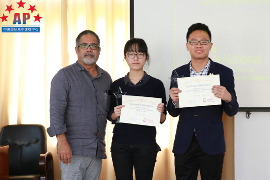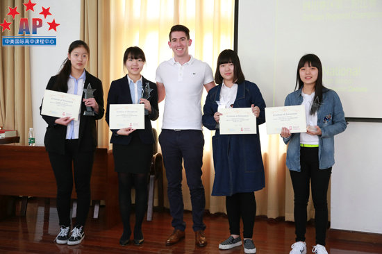成外AP课程中心学术校长Mr. Santos为亚军张栋宇、蒲玥华颁奖
