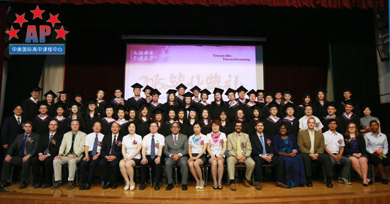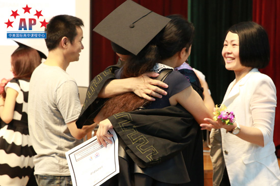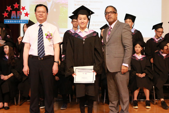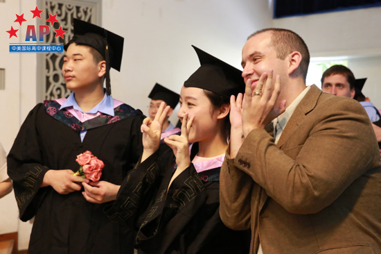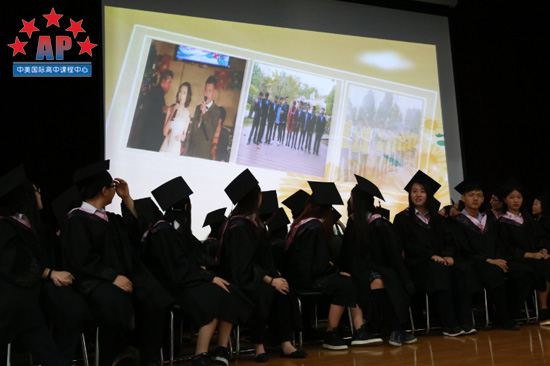 接下来,毕业班班主任梁老师制作了"回忆"视频,视频中饱含了一位老师三年中和同学们相处的每一刻,第一次运动会﹑第一次班级活动﹑第一次考托福,所有的第一次融汇在一起;当同学们看到三年前的稚嫩的自己,都不禁惊呼起来。原来这些"老掉牙"的照片都被梁老师收集了起来,这充满爱的视频为同学们带去了深深的祝福。随后,校长龚智发和学术校长Mr.Santos分别向同学们颁发了毕业证书,为高中三年画上了圆满的句号。