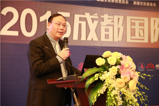 成都树德中学(光华校区)中美联合国际高中课程负责人唐明杰先生介绍中美联合国际高中2015年的招生政策
