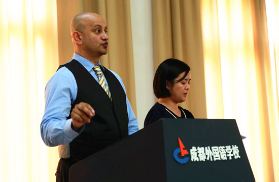 接着,AP课程中心学术校长Mr. Abinash Sharma代表课程中心全体师生对2018届新生家长表达了要求与期望。“这是成外AP中心充满改变的一年,也是AP中心成立以来外教规模最大的一年,这意味着我们将为2018届新生提供更多的AP课程。我们希望学生因为课程中心的焕然一新而眼前一亮,信心满满迎接新学期的挑战。”