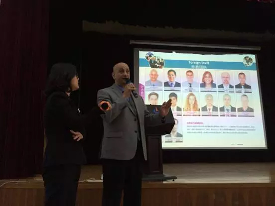 随后,学术校长Mr. Sharma讲话,他介绍了课程中心高学历和丰富执教经验的外教团队,以及对授课老师采取的学术质量总监,还有适用于学生的学术管理规章制度,我们不仅保护学术自由,也保证学风严谨。最后Mr. Sharma阐述了课程中心的主旨,学生不仅仅是来完成学业的,成为什么样的人才是我们培养的重点。