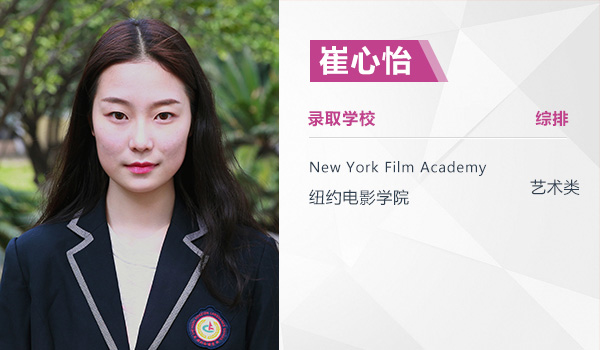 “在这里有很多思考的时间和空间,思考多了就知道自己想要什么。”高二的时候她创立了一个社团,给别人上即兴表演课,“我曾经参加了一个夏校项目学了表演,但有时也会请我们成外AP课程中心的外教协助我上课。有两位外教给了我很多帮助,一位性格很戏剧性,另一位曾在南加州大学学过电影,我经常和他们交流。”不仅如此,她还专门在暑期的时候去北京参加了一个几个月的电影培训,了解了电影行业,也认识了一些行业里的人。渐渐地,这些积累都促成了大学申请的作品集,作品集的构成有她自己拍的微电影,也有关于表演的独白。凭着这份真正出自她手的作品集,她意料之外却也情理之中地收获了纽约电影学院的电影制作的录取。