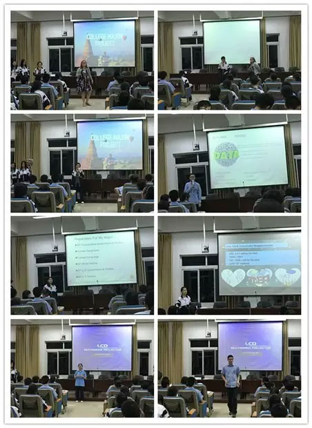 那么我们AP中心的同学们除了学习,还做什么呢?升学老师Miss Caitlin今晚就带着她的学生来到了现场。同学们会在与他们朝夕相处三年的驻校升学老师的指导和规划下参加课外活动、申请暑校、进行大学以及专业的资料搜索。AP同学向在座的初三学弟学妹们分享了他们在课程中心学习和生活的心路历程,让我们看到了他们的成长与变化。选择不同的路,有不一样的风景和经历。