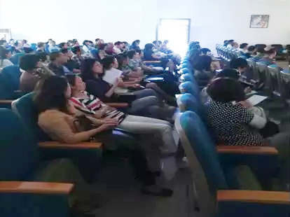 然后2014届毕业生刘子潇同学(现就读于Pennsylvania State University—UniversityPark)给家长分享了其留学过程中的经验得失和在海外的学习生活情况。