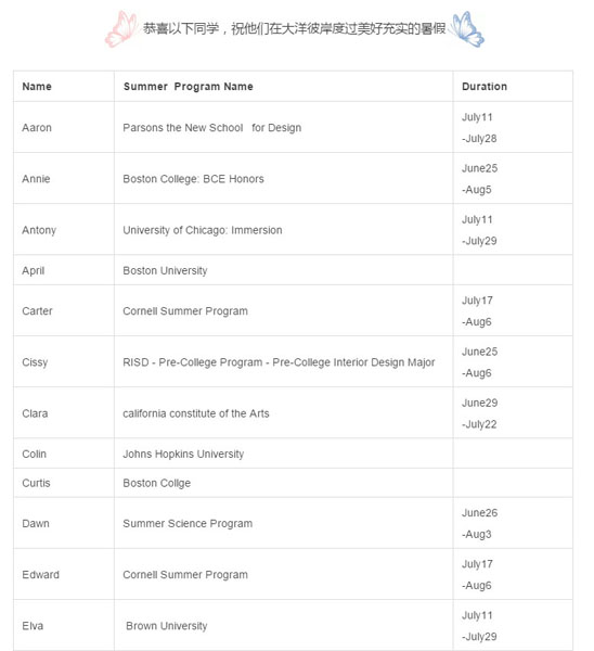 Congratulations to all G10, G11 students who got admitted by top summer programs! Wish they will spend one wonderful and meaningful summer in their programs!