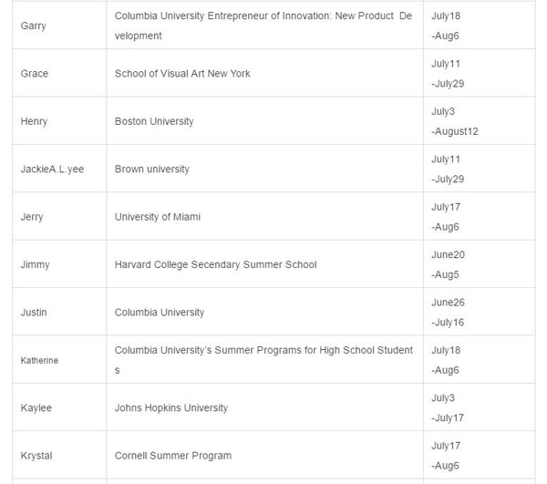 我们有32位同学,他们将前往美国各个高校经历不一样的暑校生活。或是与伙伴研究飞机大炮,或是探索引力波,或是听各商业大佬分享成功之路…… 餐餐牛排,澳洲大龙虾,国宴标准。哈~~~当然不是,他们将参加各个实实在在的学习项目,切身参与美国大学学习、课外活动。他们的暑校之旅将满载干货,苦并快乐着!