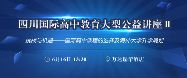 家长们,让我们共同学习,拥有更强的能力来为孩子选择和规划!成外AP课程中心诚邀您莅临【四川国际高中教育大型公益讲座Ⅱ】。本次讲座主题为“挑战与机遇——国际高中课程的选择及海外大学升学规划”。全川数百位来自石室树德成外实外等各名校国际高中的学生、家长、教师及专家学者们将以自由访谈形式与您共同交流探讨各种关注的话题!
