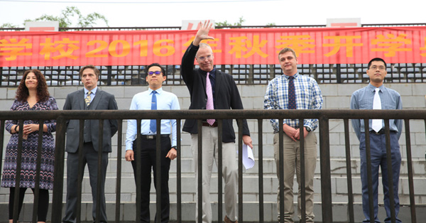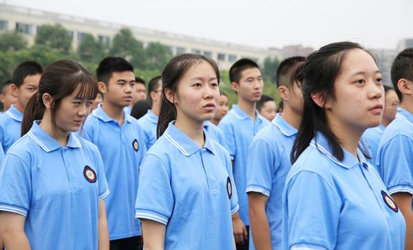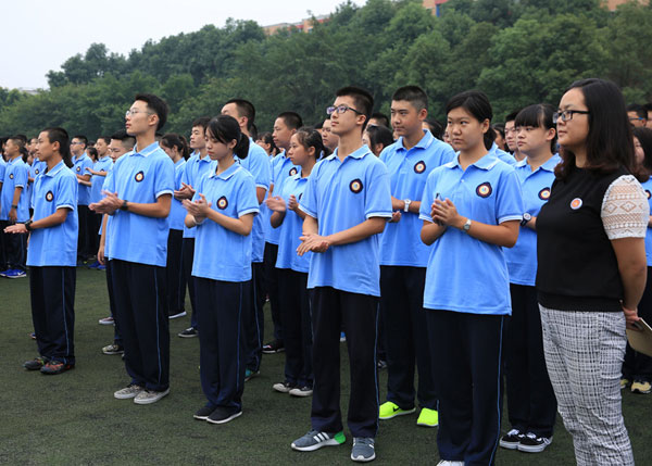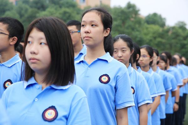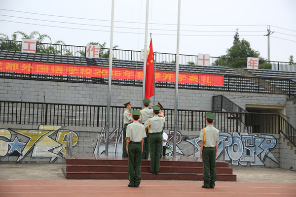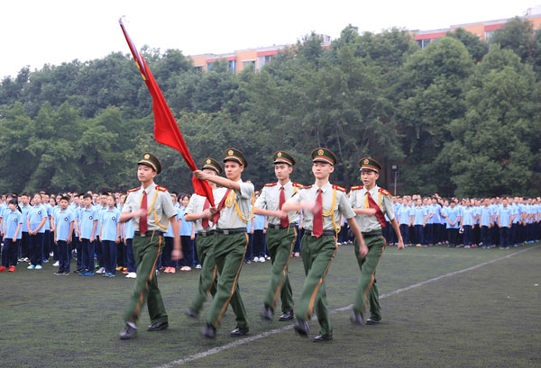 新生在成都外国语学校的第一次升旗仪式,庄重的仪仗队,全体齐唱国歌,瞬间斗志指数UP↑