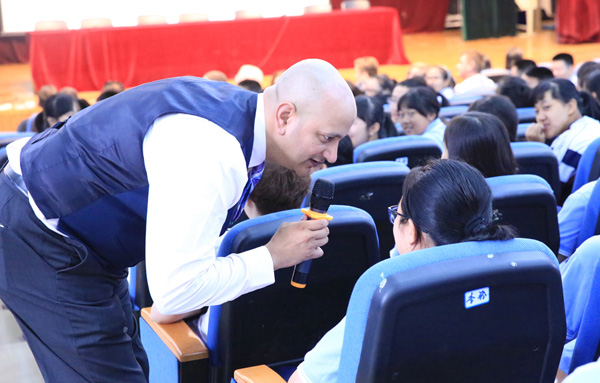 在成外AP有位人物,据说让同学们“闻风丧胆”,那就是学术校长Mr.Sharma。Sharma在典礼上说有人建议他再“亲切”些好让更多人“爱”他。他认真地跟同学们说了“爱和改变”。