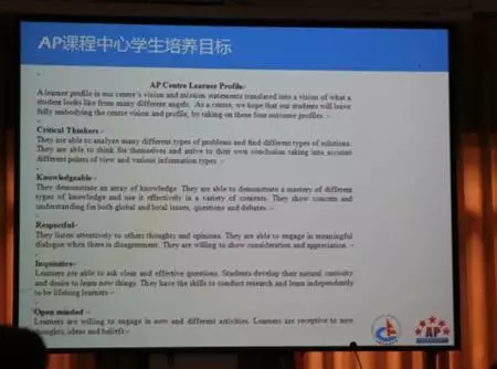 当天成外AP的陈老师还给家长们详细介绍了成外AP中心的学生管理办法。陈老师和唐老师都不谋而合的强调的一点就是虽然国际高中的成绩很重要,但是如何通过三年的学习提高学生的综合素质,才是AP课程最重要的任务。