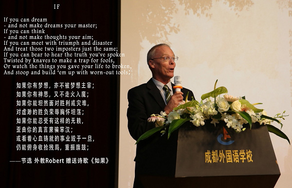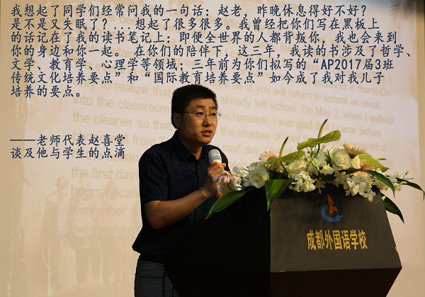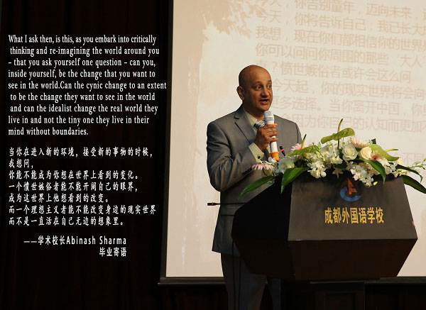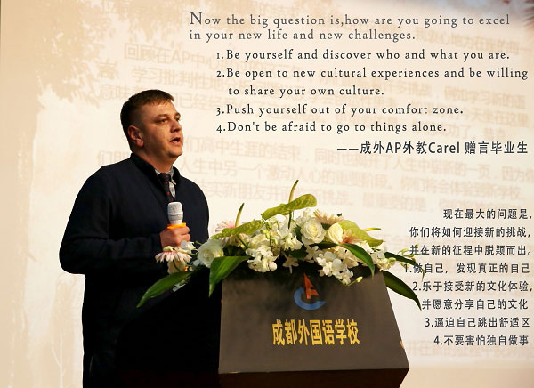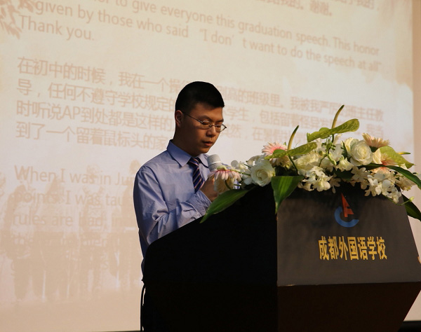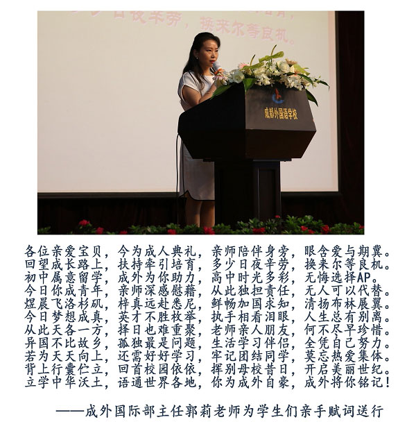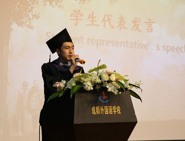 今年成外AP毕业典礼的主题是 “春晖育我情,寒凝凌云志”,英文翻译是 “Ambitious that stem from gratefulness.” 也许是感恩,也许是壮志,但无论哪一样都嫁接于生命之上。有句经典话说“凡好树都结好果子,惟独坏树结坏果子”,所以生命受到什么样的滋养,成长为什么样式最为关键。