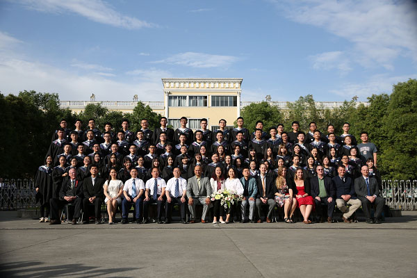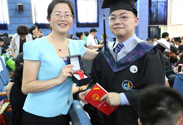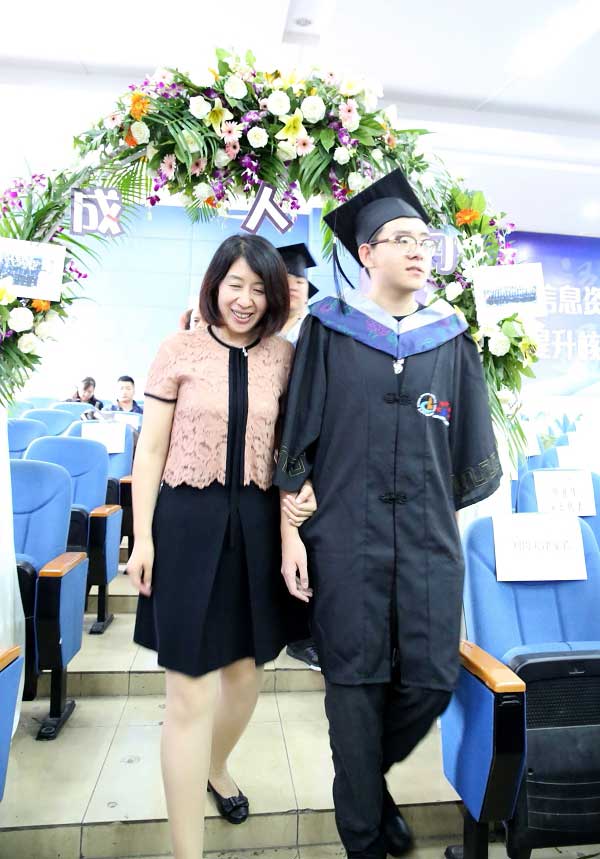 毕业典礼之前拍摄毕业照,李老师和自己班上的每一同学都合影留念