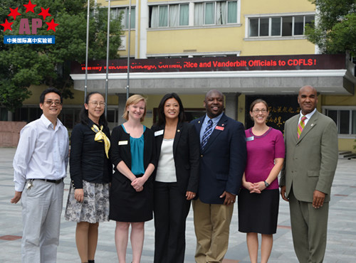 芝加哥大学、康奈尔大学、莱斯大学和范德堡大学的招生官与成外领导合影留念
