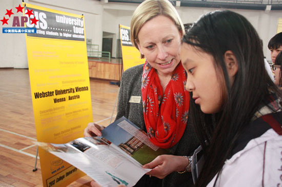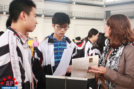 4月12日上午9点,14所美国大学、2所加拿大大学、1所英国公立大学,以及阿联酋酒店管理学院和韦伯斯特大学(奥地利)等共计19所海外大学组团来到了AP课程中心实验班,在成外体育场与中美国际实验班学子进行了一对一的交流。交流会上,19所海外名校的招生官耐心热情地回答了同学们的问题并对中美实验班学子将来的留学生活给予了中肯的意见和建议。