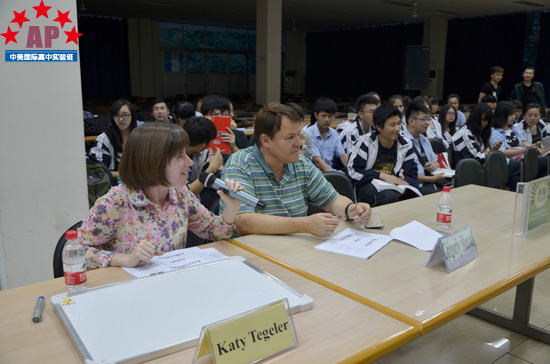 5月5日晚上7点半,首届成外AP课程中心实验班"我是单词王"比赛的第二次月度比赛在成都外国语学校图书馆举行,本次月赛特邀请成都外国语学校AP课程中心实验班英语教师Katy Tegeler和AP物理教师Grigoriy Shustef担任评委老师。经过四轮精彩角逐,两支队伍分别以79.40分和64.30分获得本次月度比赛的最高分,夺得了晋级资格。