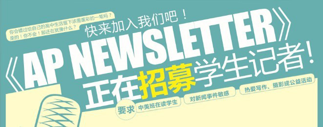 由成外AP课程中心实验班主办的《AP Newsletter》正在招募学生记者!你会错过给自己的高中生活留下浓墨重彩的一笔!是的!你不会!那还在犹豫什么?快来加入我们吧!